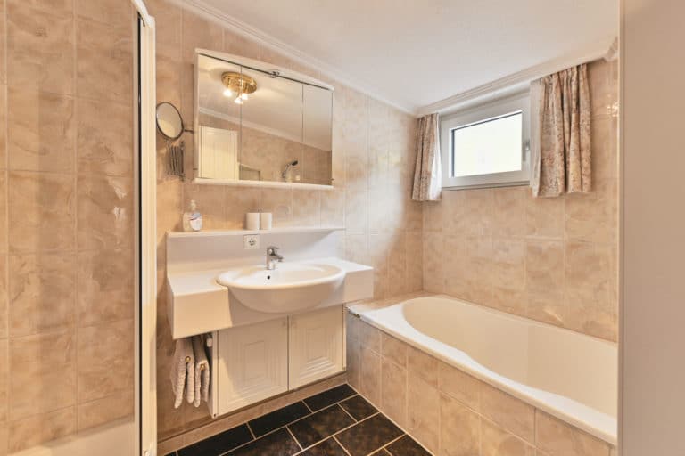 - bathroom with bathtub and shower, separate toilet and balcony.
